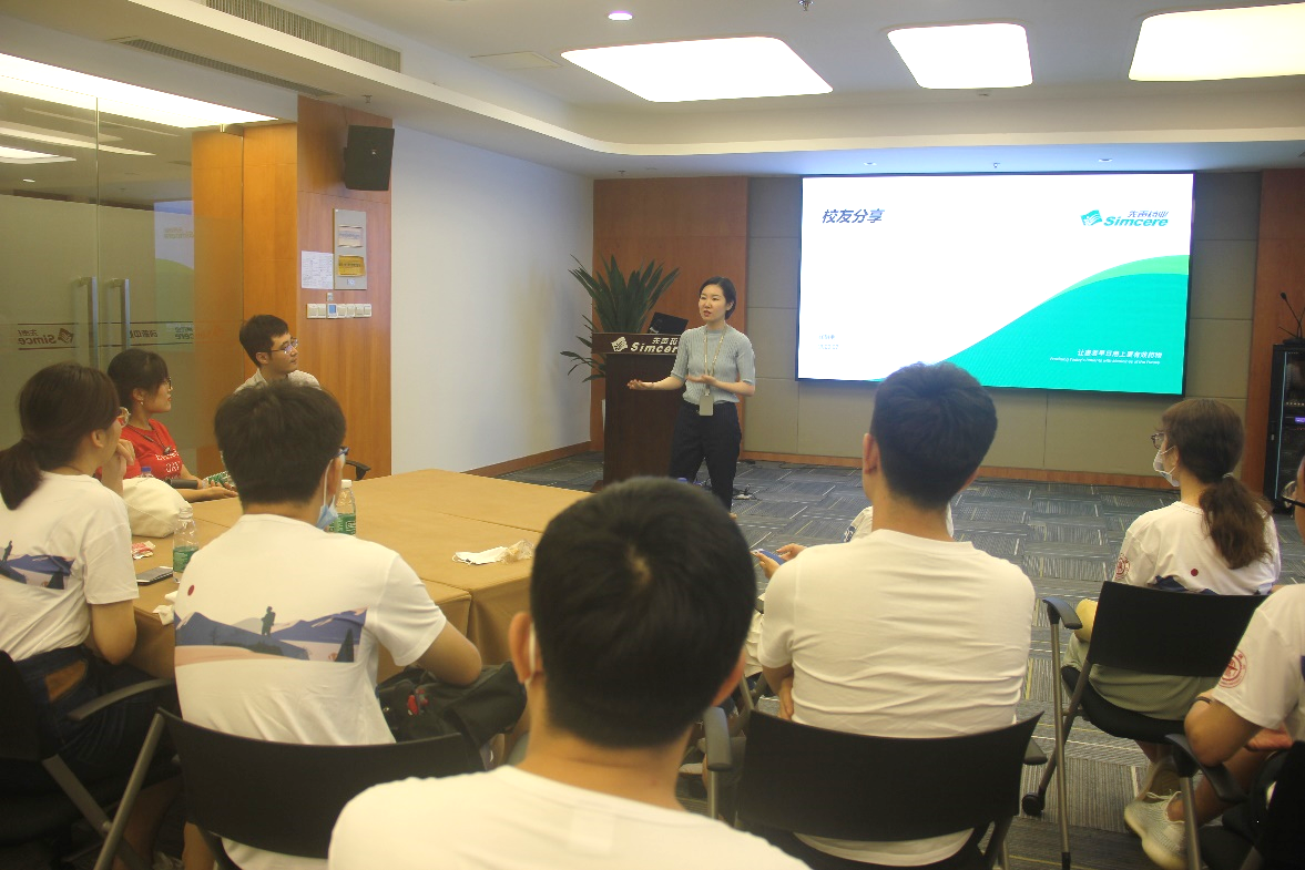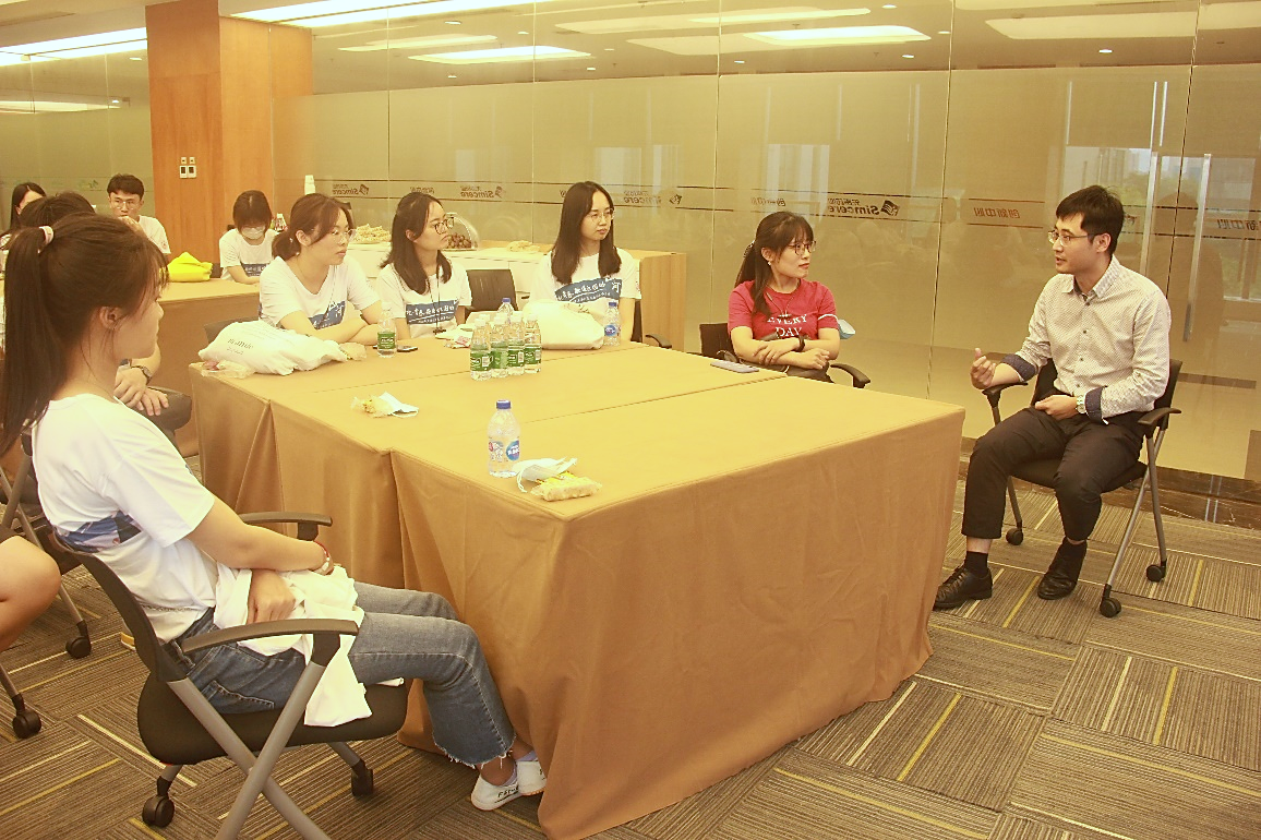 实验室参观结束后,陈怡给实践团成员详细介绍了公司的研发实力、团队水平和产品布局,并就生物医药领域的未来发展分享了自己的看法。随后437bwin必赢国际官网校友、任职于先声药业研发部门的徐祖朋给实践团成员们分享自己的经历以及对就业择业的看法。徐祖朋曾任职过多家企业,就第一份工作的选择以及职业的转换给同学们提供了宝贵建议。