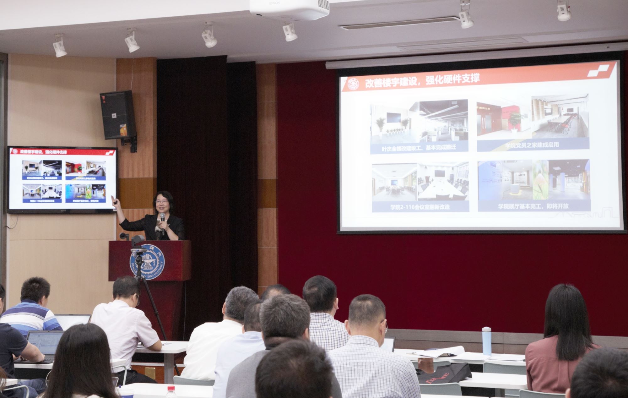 常务副院长冯雁以“凝心聚力创佳绩,攻坚克难攀高峰”为主题作报告,回顾了疫情防控背景下学院春夏学期的主要工作,就秋季学期重点工作进行全面部署。面对突如其来的新冠肺炎疫情,全院师生共克时艰,平稳、持续推进学院各项事业发展。以习近平新时代中国特色社会主义思想为指导,全面贯彻党的精神,深入落实立德树人根本任务,积极服务国家战略,加快推进“双一流”建设,在人才培养、学科建设、科研攻关、人才引进与发展、校友联络与筹资、楼宇建设等方面取得了突出成果,奋力开创学院改革发展新局面。学院将继续紧抓疫情防控及安全稳定,强化标杆院系创建水平,科学编制“十四五”规划,落实一流专业建设,增强创新策源能力,完善制度环境和文化氛围,优化资源配置和管理体制,为学校探索全面建成中国特色世界一流大学的发展新征程贡献力量。