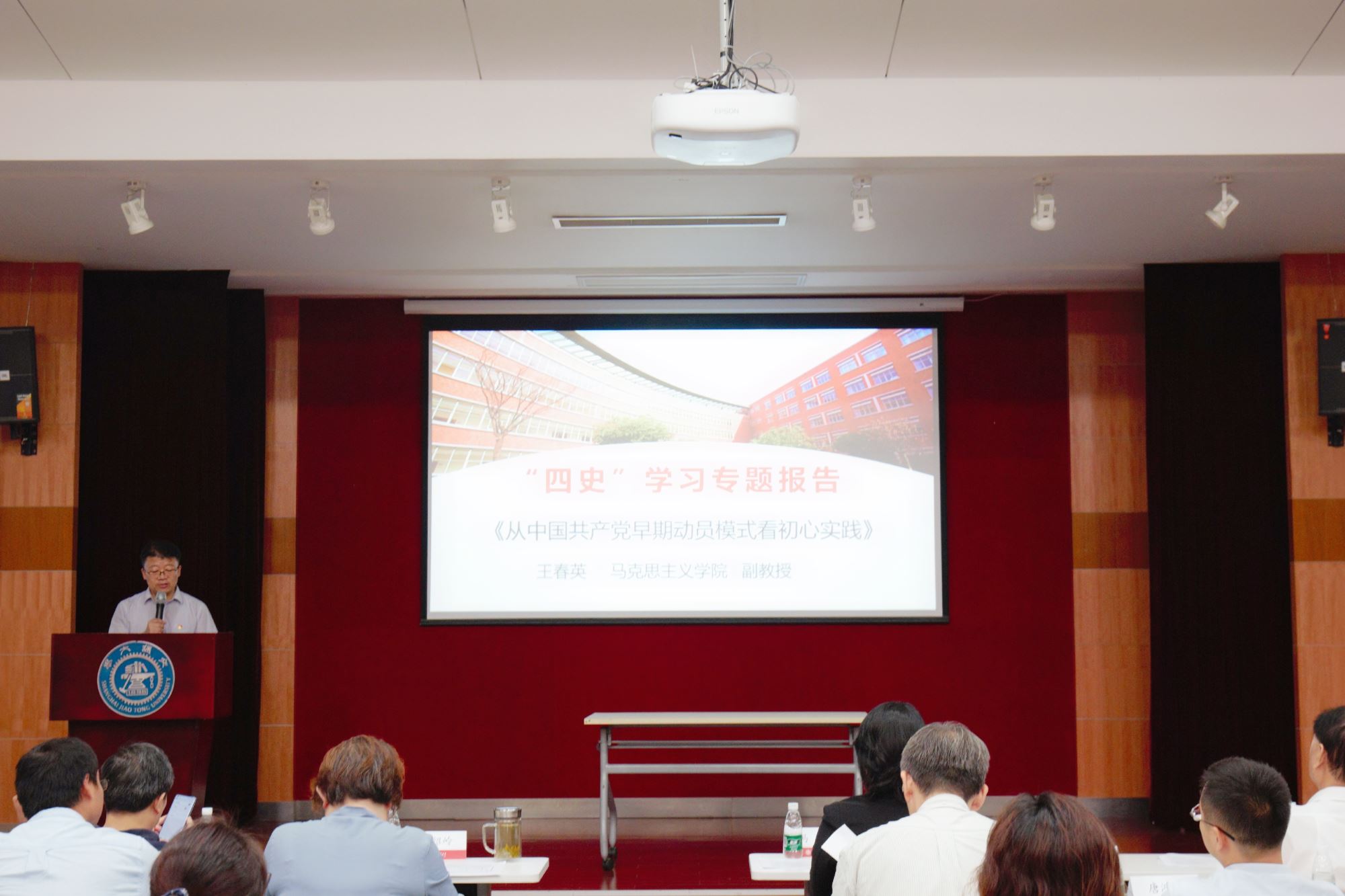 为深入贯彻习近平总书记关于深入学习党史、新中国史、改革开放史、社会主义发展史的重要指示精神,认真落实学校关于推进“四史”学习教育的工作安排,9月29日下午,437bwin必赢国际官网举办“四史”学习教育专题辅导讲座,邀请学院马克思主义学院王春英副教授以《从中国共产党早期动员模式看初心实践》为题,为学院党员代表授课。讲座由学院党委书记嵇绍岭主持。