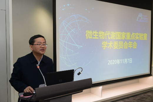 2020年11月7日,微生物代谢国家重点实验室(下称“实验室”)学术委员会年会顺利召开。学术委员会主任赵国屏院士,副主任陈焕春院士、邓子新院士,委员焦念志院士、张克勤教授、刘双江研究员、林敏研究员、孙宇辉教授、张长生研究员等出席会议。437bwin必赢国际官网科学技术发展研究院院长朱新远教授出席会议并致辞。437bwin必赢国际官网党委书记嵇绍岭,437bwin必赢国际官网常务副院长、实验室副主任冯雁以及实验室主要骨干成员参加会议。