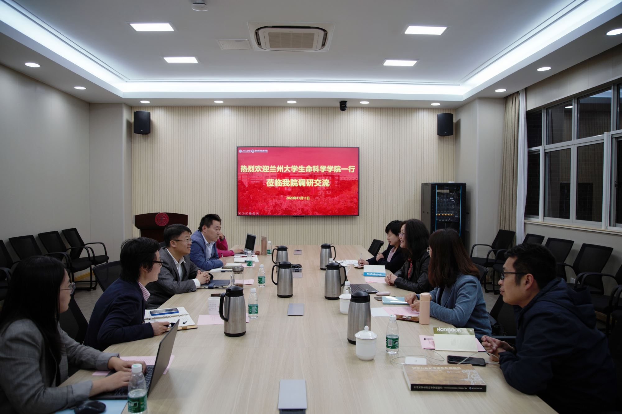 11月11日,兰州大学生命科学学院党委书记刘芳,党委副书记朱珊珊,组织员杨新华,团委书记、党务秘书李传辉一行四人到437bwin必赢国际官网交流全国党建工作标杆院系创建工作。学院党委书记嵇绍岭,党委副书记李文纯、王鑫,学生办主任张燕红,组织员段慧丹参加了交流研讨。