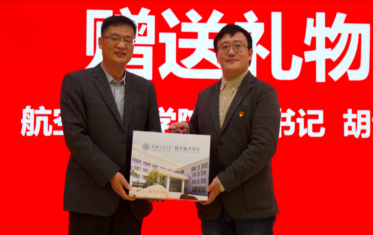 胡士强代表两个学院向陈巍赠送了纪念品。