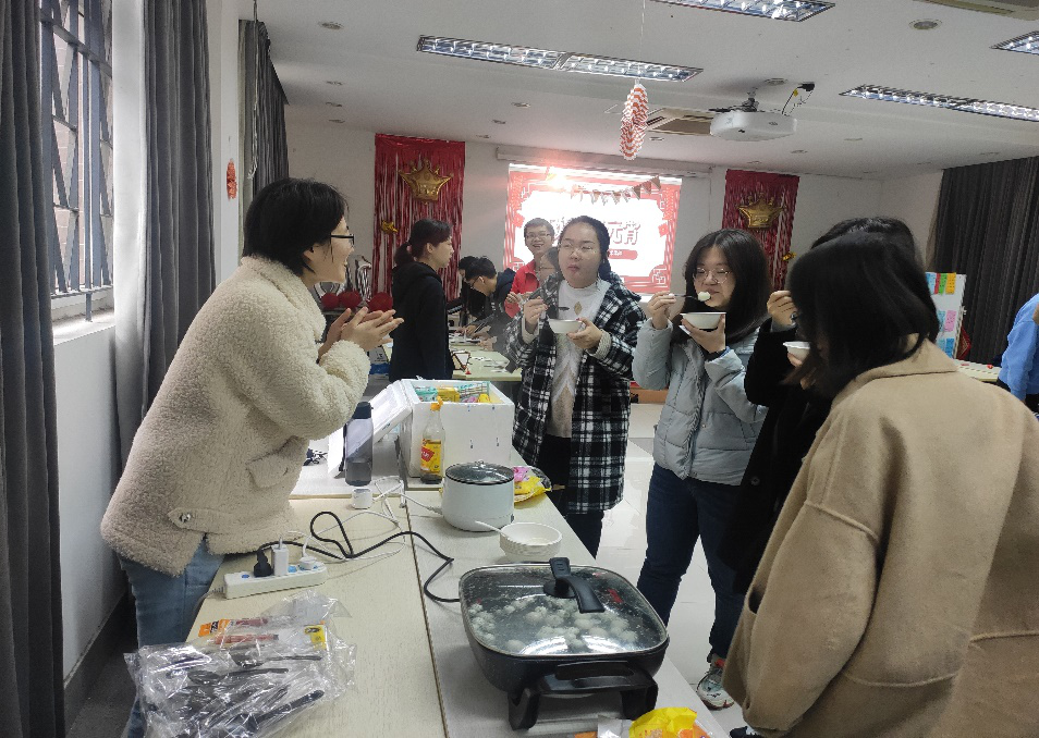 活动伊始,热乎乎的元宵在锅里翻滚,师生边品尝边交流,场面热闹非凡。