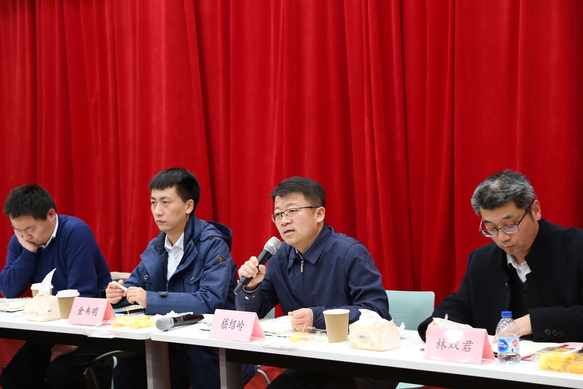 李文纯作院情介绍。他详细介绍了学院的发展历程、学科基地、科研成果、师资队伍与人才培养情况,分析了近几年学院学生就业情况。