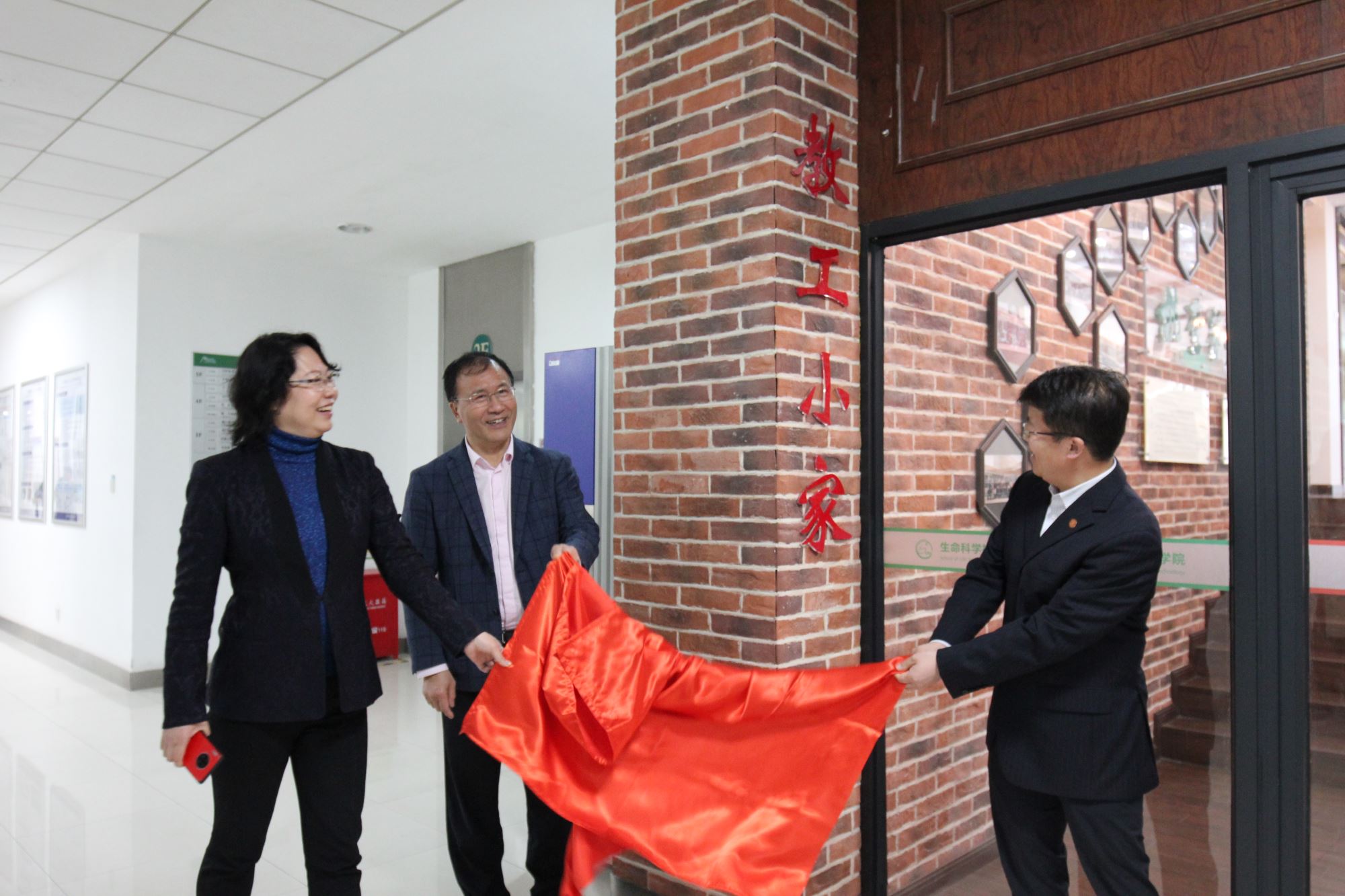 邓子新、嵇绍岭和冯雁共同为教工小家揭牌