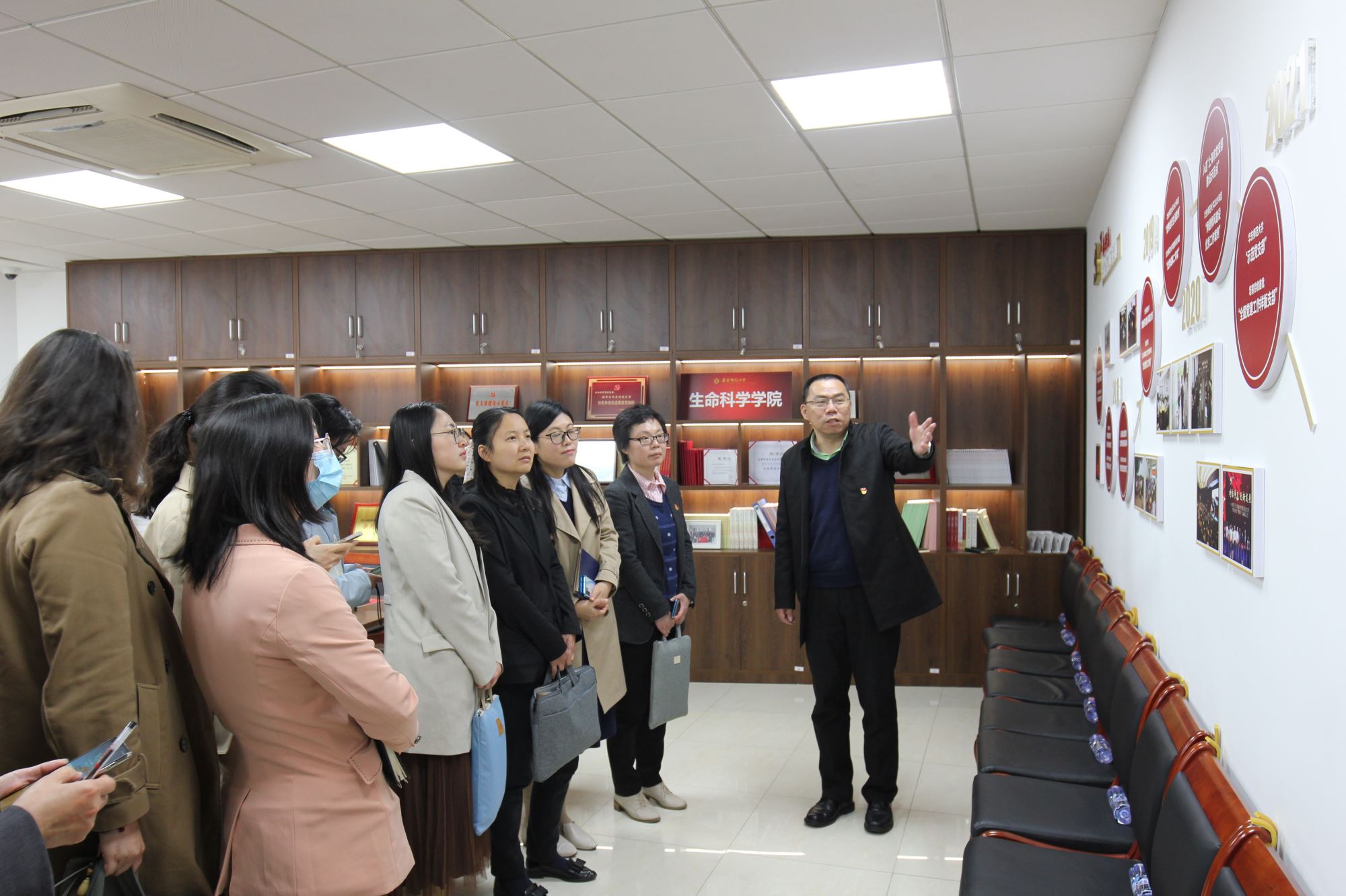 嵇绍岭表示,两个学院一直以来有着非常多的业务交流,今后希望通过党建共建的方式,加深合作交流,取其所长,优势互补。座谈交流结束后,嵇绍岭赠送学校纪念铜盘,与会党员一同参观了生物学系教工党支部活动室。