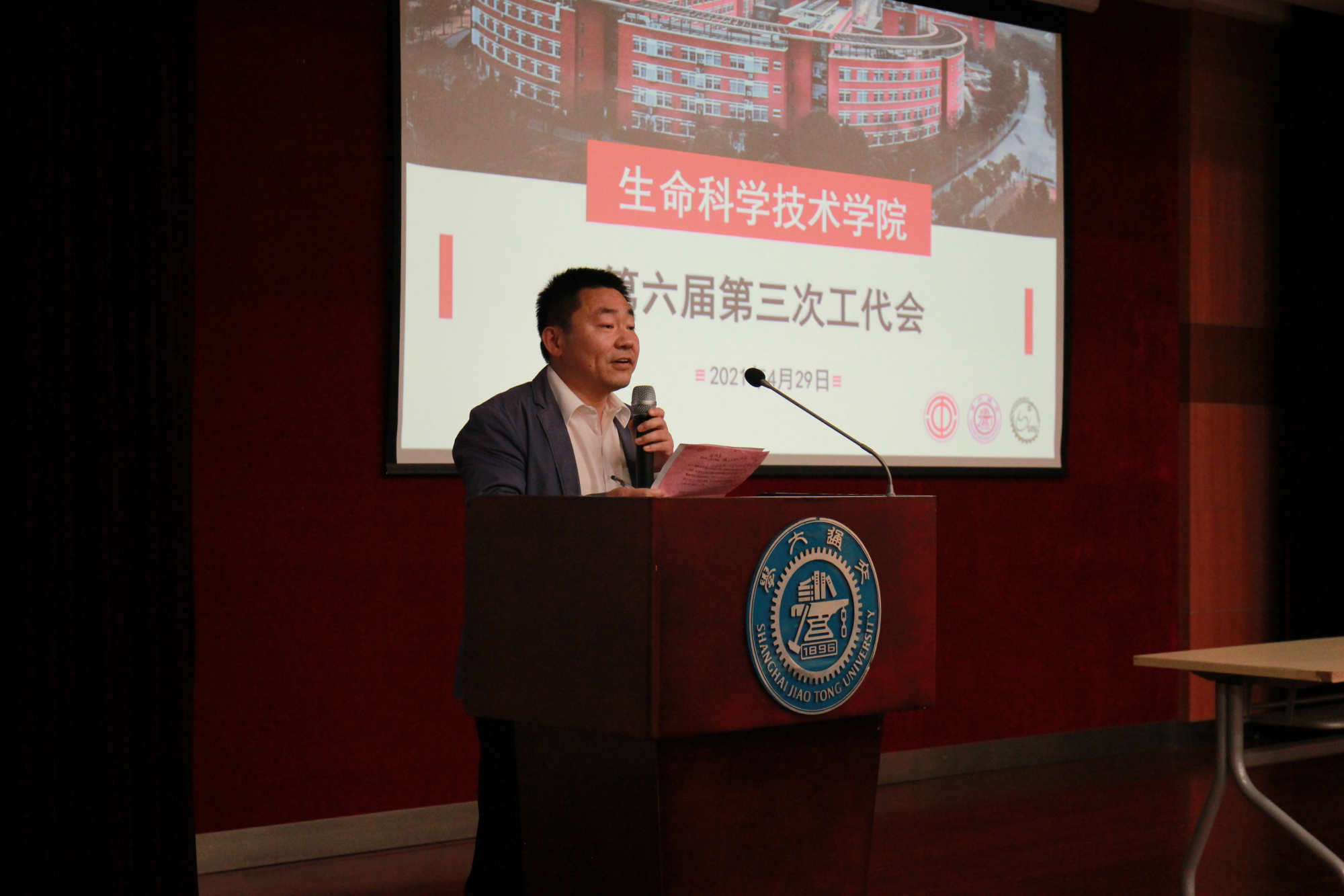 4月29日下午,437bwin必赢国际官网第六届工代会第三次会议在生命药学楼树华多功能厅召开。学院党委书记嵇绍岭,常务副院长冯雁,党委副书记李文纯、王鑫,学院教代会暨工代会代表共36人出席大会。会议由学院工会主席俞章盛主持。