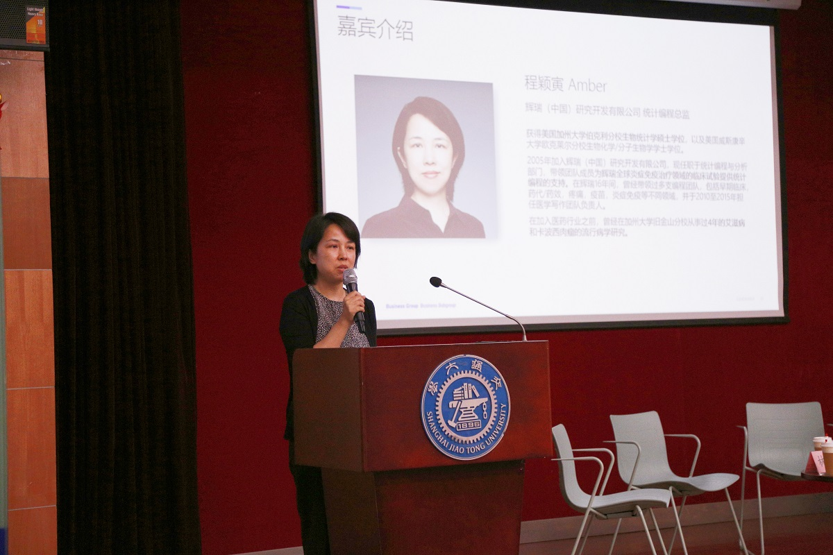 程颖寅介绍了公司统计、统计编程、数据管理部门的职能和工作内容,以团队助力新冠疫苗的研发的事迹,让同学们体会到数据分析在新药走向临床的巨大力量。她认为,目前虽然仍在使用传统的统计编程语言,但新技术带来的数据资源整合将为患者带来更多的益处。她指出职业生涯需要考虑到个人成就感,同学们也要正确认识到职业与个人能力提升、个人成就感之间的重要关系,做出最适合自己的选择。