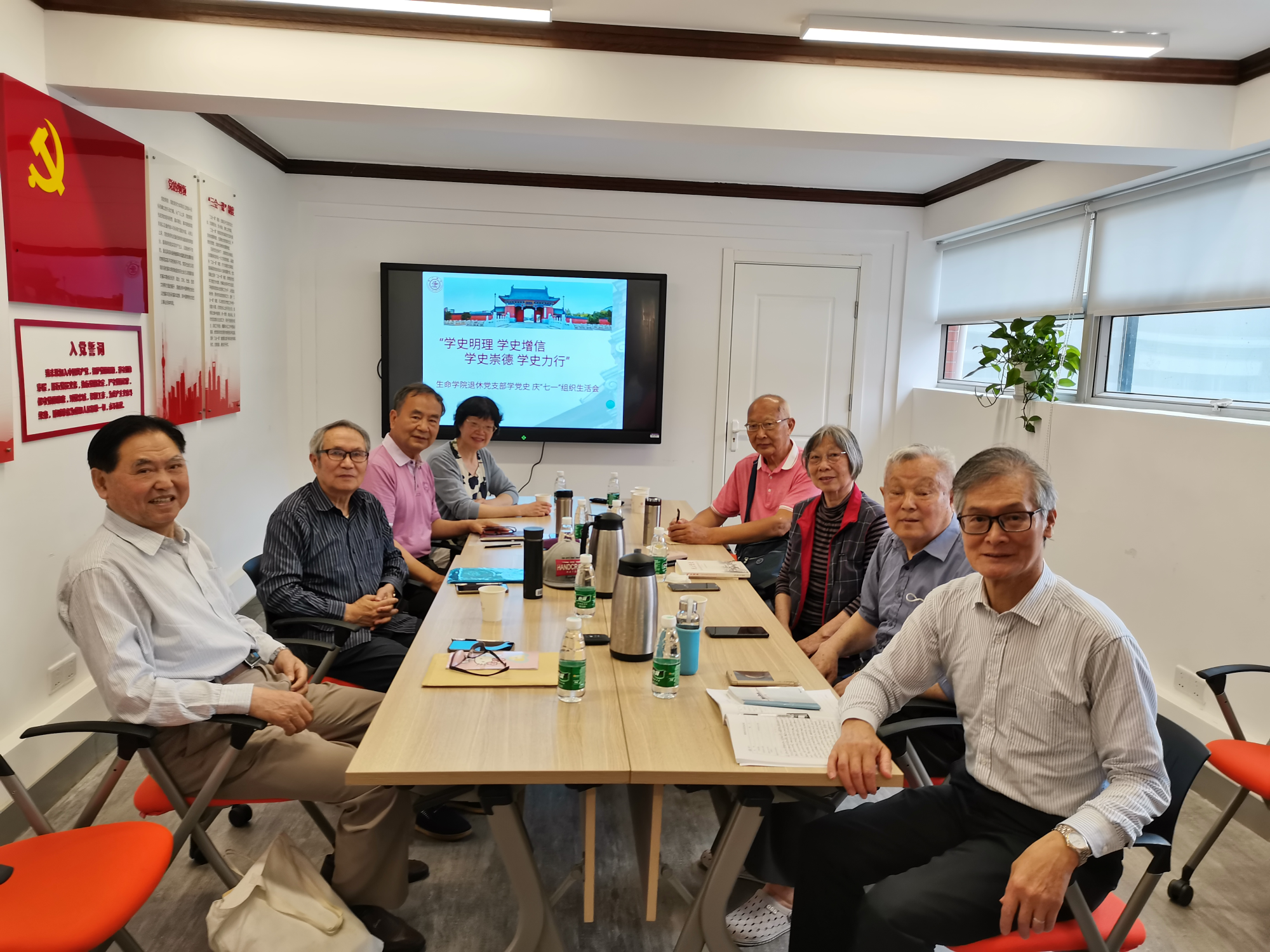党龄超过50年的老党员朱章玉同志、许煜泉同志和杨宝康同志在内的8位老同志现场参加此次主题党日活动,学院委派联系人、党委委员张雪洪一同参加会议。活动由党支部书记罗九甫同志主持。