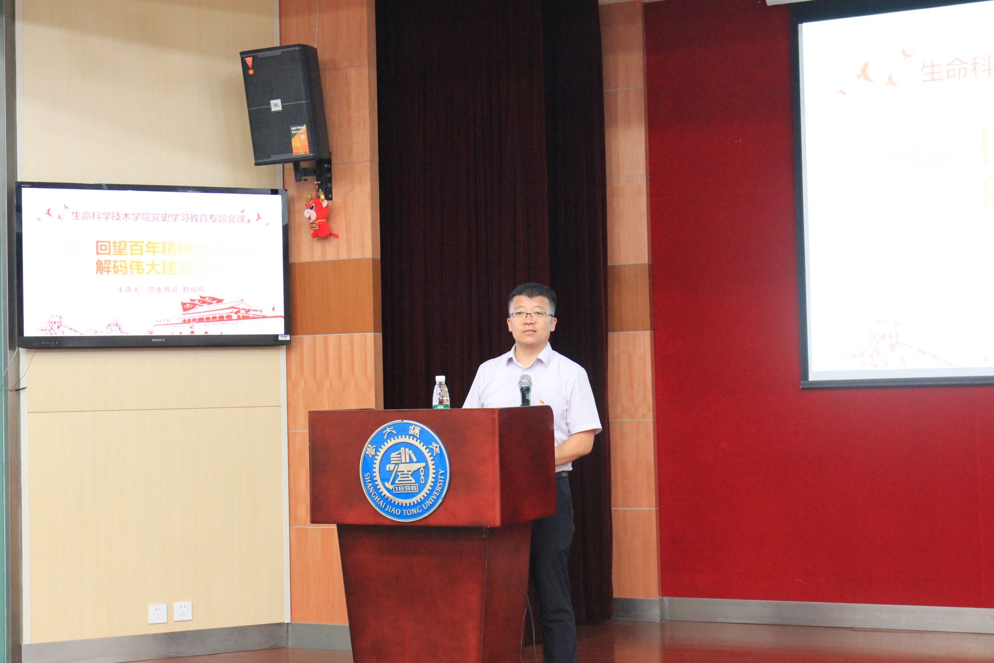 为扎实推进党史学习教育工作,深入学习贯彻习近平总书记在庆祝中国共产党成立100周年大会上的重要讲话精神,坚持学史明理、学党增信、学史崇德、学史力行,引导广大党员干部认真学党史、悟思想、办实事、开新局。7月14日下午,学院党委书记嵇绍岭在树华多功能厅主讲题为《回望百年精神谱系 解码伟大建党精神》的党史学习教育专题党课,学院领导班子、全体教工党员和学生党员代表参加学习。党课由党委副书记王鑫主持。