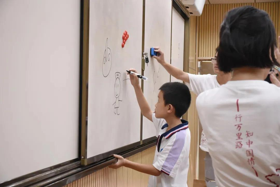 在活动课上,实践团成员史君涵、王苏然寓教于乐,给孩子们带来了“击鼓传花”、“你画我猜”等游戏,孩子们在丰富多彩的游戏中提升了创造力和表现力。