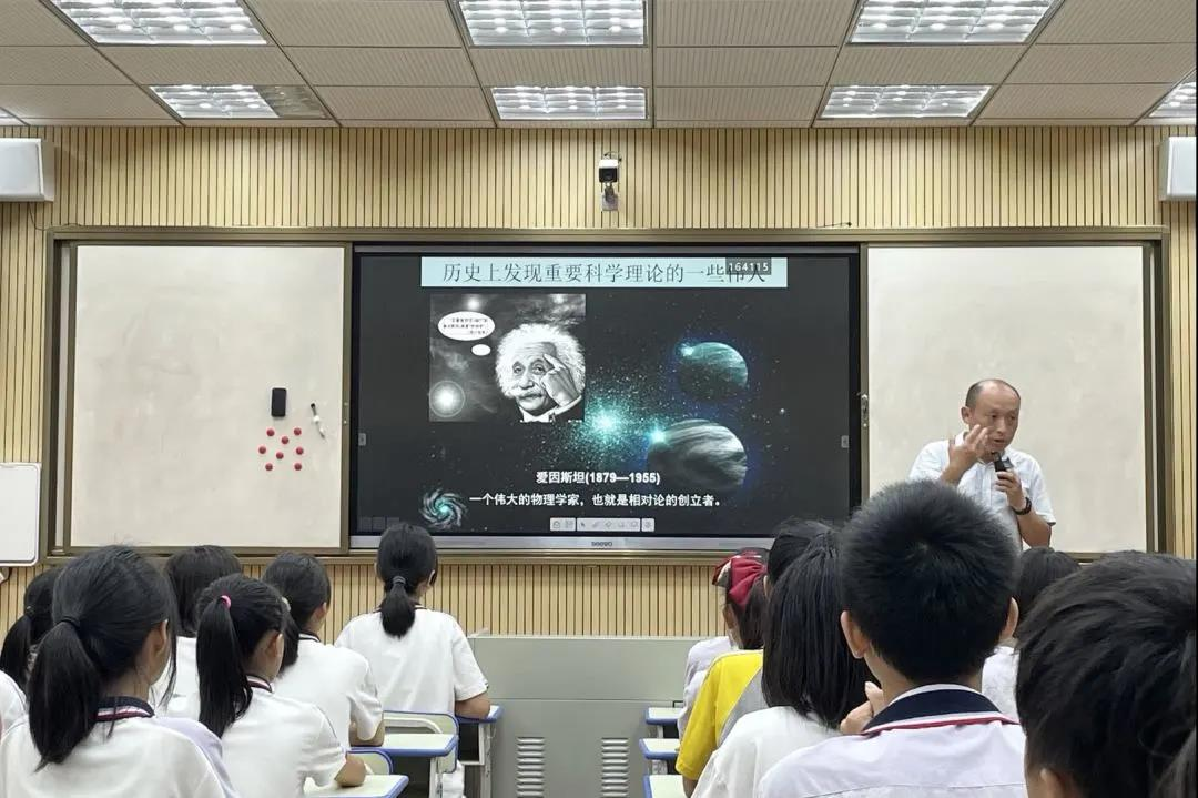 实践伊始,曹阳老师为孩子们带来了“科技·人类·未来”主题科普讲座,从“什么是科学,什么是技术”两个问题切入,结合当下新冠疫情等实例,向孩子们阐明科技对人类发展的深远影响,引导孩子们努力学习、坚定理想。