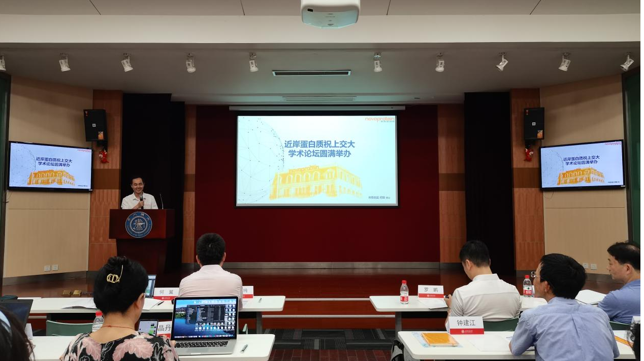上海近岸科技有限公司何翼先生致辞。他表示,当前生命科学正出于蓬勃发展的突破口,期望广大优秀博士生为行业的发展和进步贡献出自己的力量,并预祝论坛顺利举办。