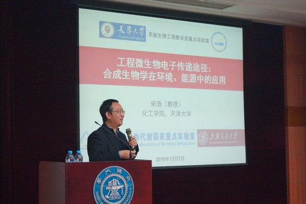本次论坛邀请了来自于上海有机化学研究所研究员周佳海和天津大学教授宋浩,分别做题为“天然产物生物合成相关的几例结构酶学研究”和“工程微生物电子传递途径:合成生物学在环境能源中的应用”的特邀报告。