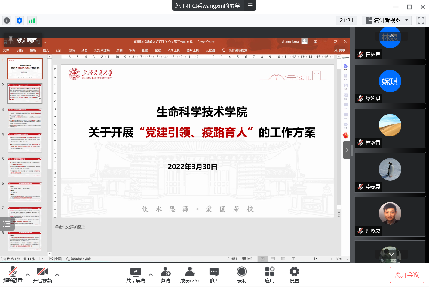 本次会议交流布置了“我为群众办实事”、学习强国、疫情防控和实验室安全等事项。