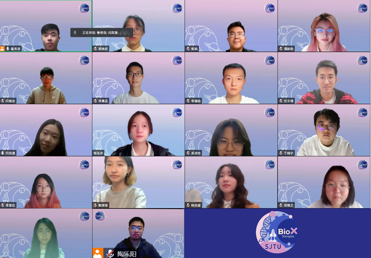 SJTU-BioX-Shanghai团队由贺林院士、马钢副研究员、王毓舒老师指导,团队成员由来自437bwin必赢国际官网的陈柏润、费嘉琪、胡鼎康、江向海、罗诗涵、任思源、张杰汉、张子骜、周芷诺,致远学院代若冰、卢毓昕、于希、朱子健,农业与生物学院刘子逸和乔滢瑞,环境科学与工程学院贺玉莹,海洋学院李奕帆,设计学院韩欣越,共18名本科生以及陈自修、钱弘毅、肖琛涵三名高中生组成。2020年团队队长李可依,队员钟博子韬、冯宸煦、刘江影、方震、陈子瑶等担任技术指导。