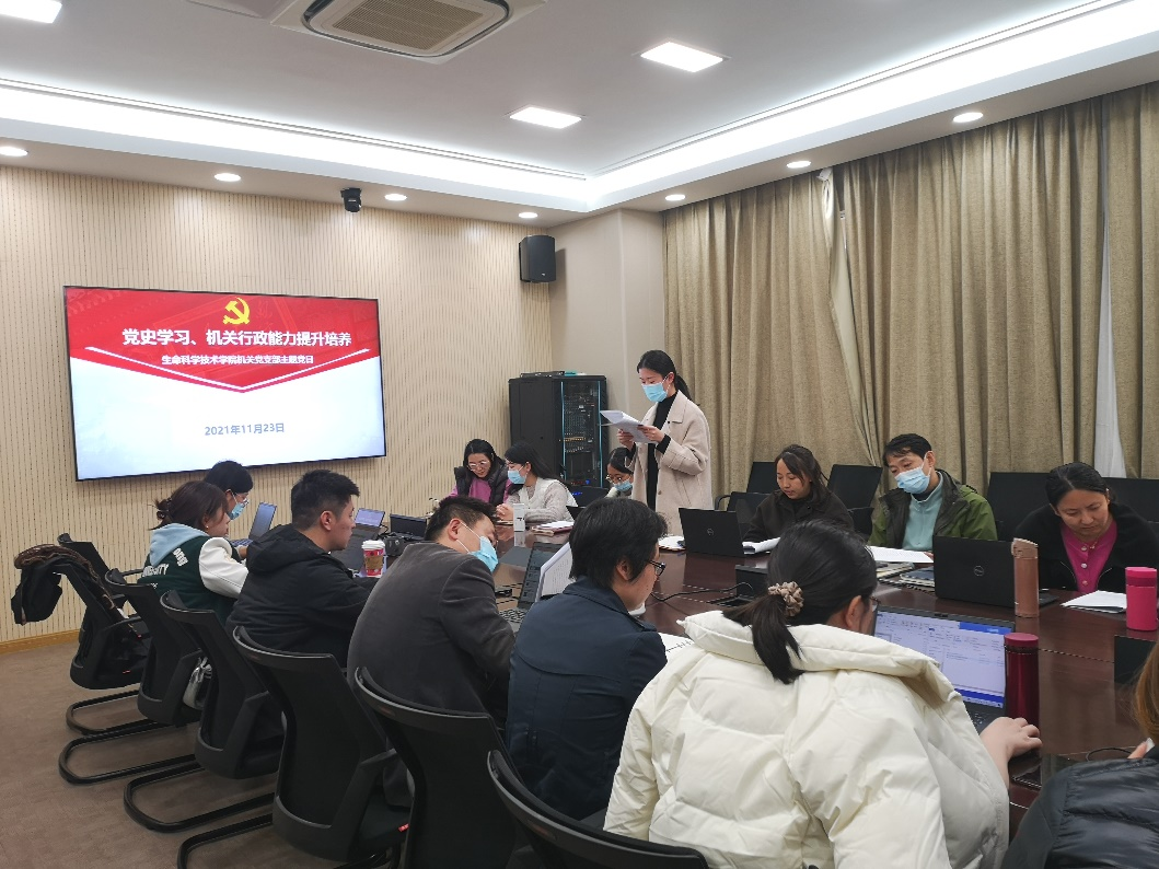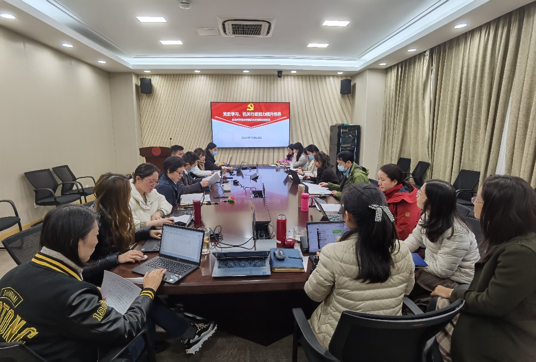2021年11月23日,437bwin必赢国际官网机关党支部召开本月主题党日,组织全体党员专题学习十九届六中全会精神。党支部书记解丛君主持会议。