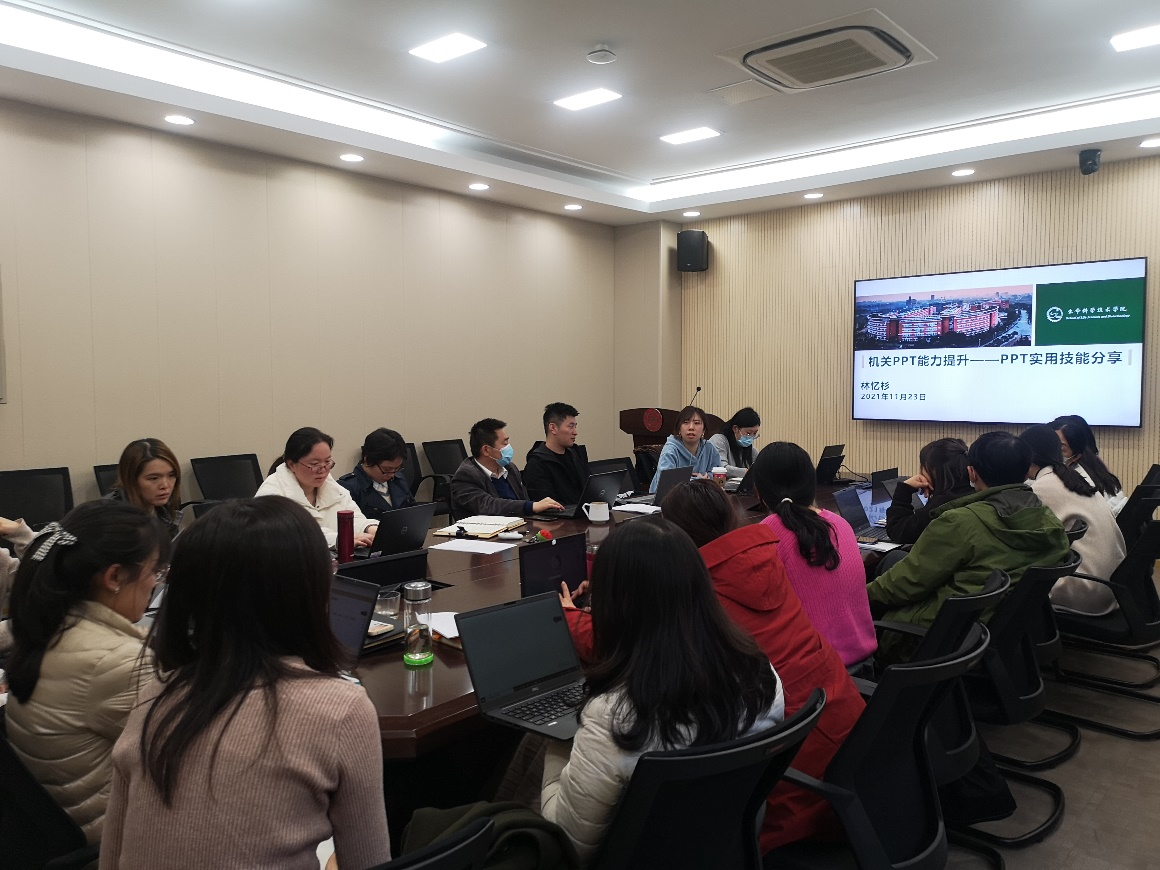 本次主题党日继续开展“1+X”能力提升工程,由党支部组织委员林忆杉同志进行PPT实用技巧分享。她现场边演示边讲解,从字体下载、IsIide插件、幻灯片母版、可视化排版和快捷键几个方面毫无保留的为大家分享了简单易学又能事半功倍的制作PPT的“小诀窍”,并推荐了相关的学习资源。此次培训对提高机关行政管理人员提高办公软件应用水平起到了很好的促进作用,得到大家一致好评,机关党支部将继续围绕提升管理服务效能,陆续举办系列培训活动,助力行政管理人员的发展。