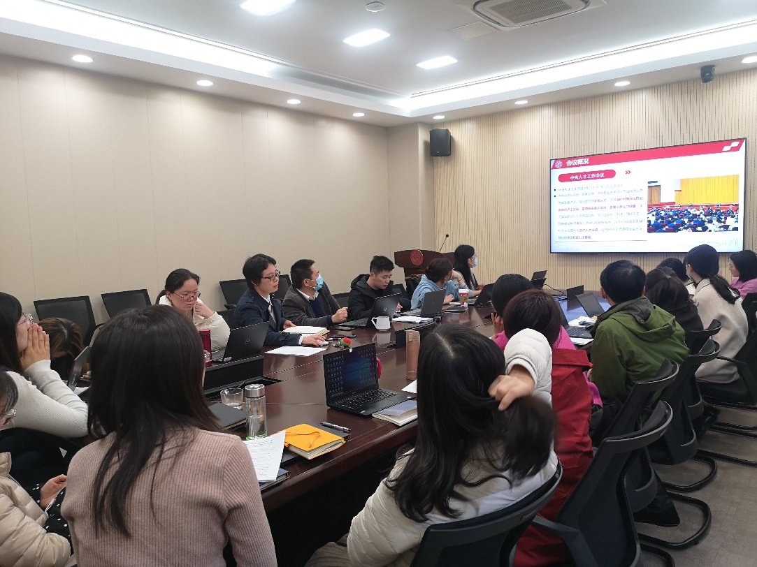 此外,本次主题党日活动中党委副书记王鑫同志领学了习近平总书记在中央人才工作会议上的重要讲话精神。中央人才工作会议是党中央关于人才工作的重要会议,与学院主责主业密切相关,机关行政管理人员要坚持“一切为了人才,为了人才的一切”,始终从学院学科发展的角度,做好本职工作,提升管理服务水平,将服务人才发展工作做到极致。最后,王鑫副书记对学院机关年度考核办法(2021年修订)进行了解读。