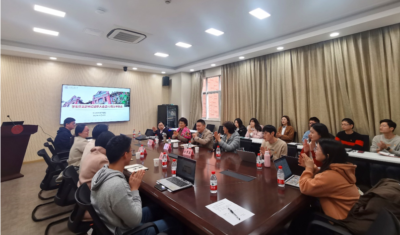 述职结束,与会老师充分肯定了各学生党支部一年来在支部建设、党史学习教育、特色活动探索等方面取得成绩,对学生支部书记的尽职尽责表示感谢,并结合自身工作经历,对支部书记提出希望。一是进一步发挥党支部书记领头雁作用,引导支部党员将个人前途和国家命运联系在一起,发挥党员先锋模范作用;二是依托“样板支部”形成学生党支部特色,进一步深化校企支部共建、党团支部共建和师生支部共建,提升支部活力;三是强化支部战斗堡垒作用,在关键时候体现支部作用,为群众办实事。
