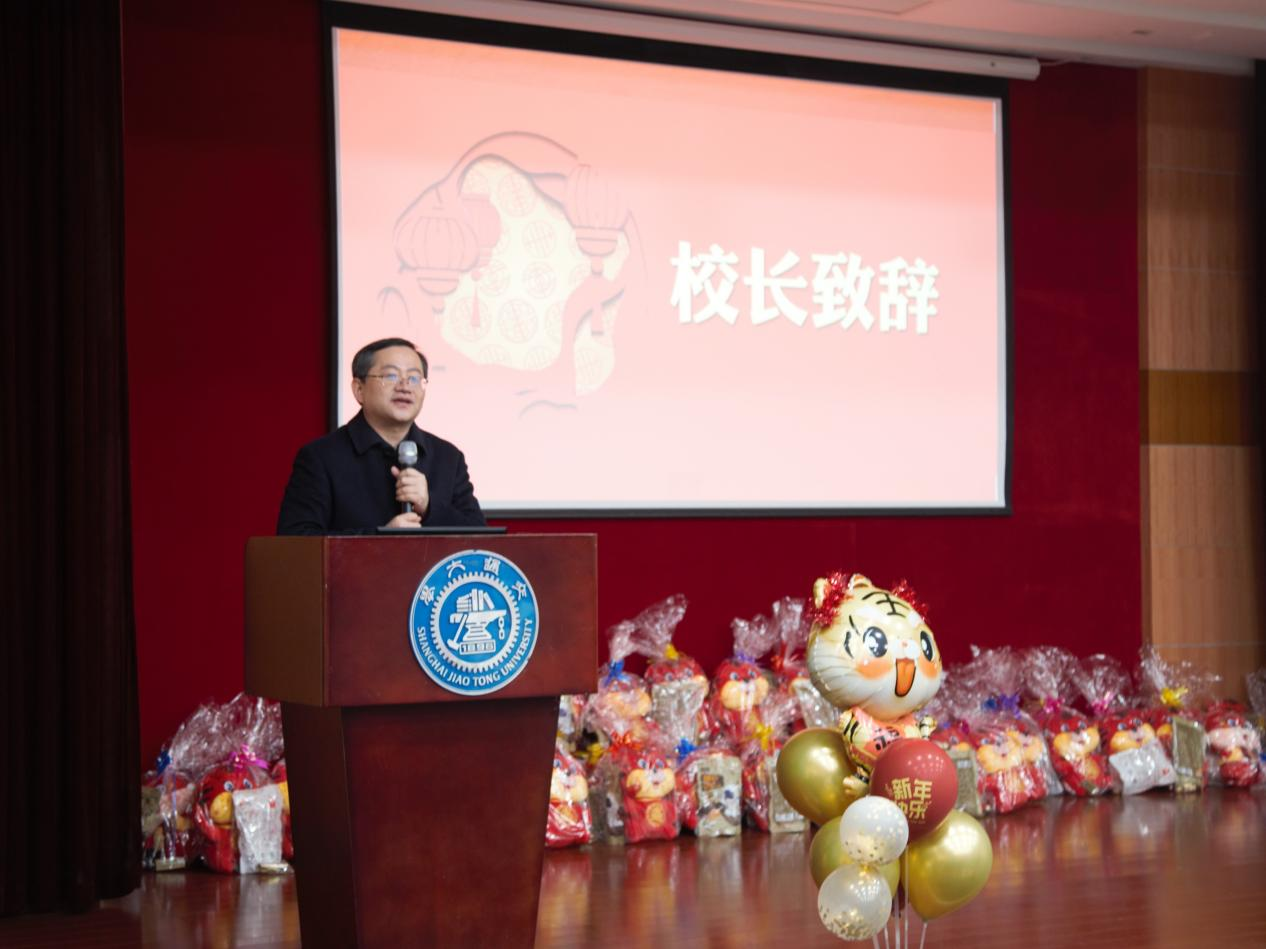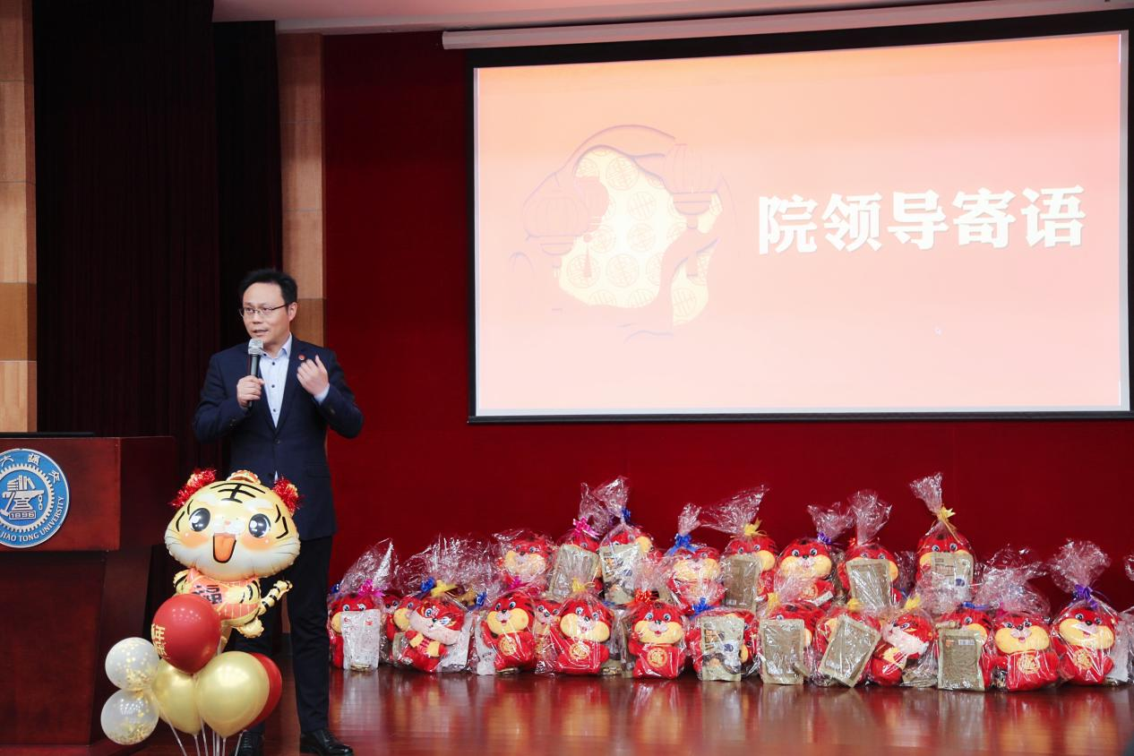 顾建平代表学院寄语,向学院师生及其家人送上诚挚的祝福。他鼓励同学们永远保持干劲,努力拼搏。