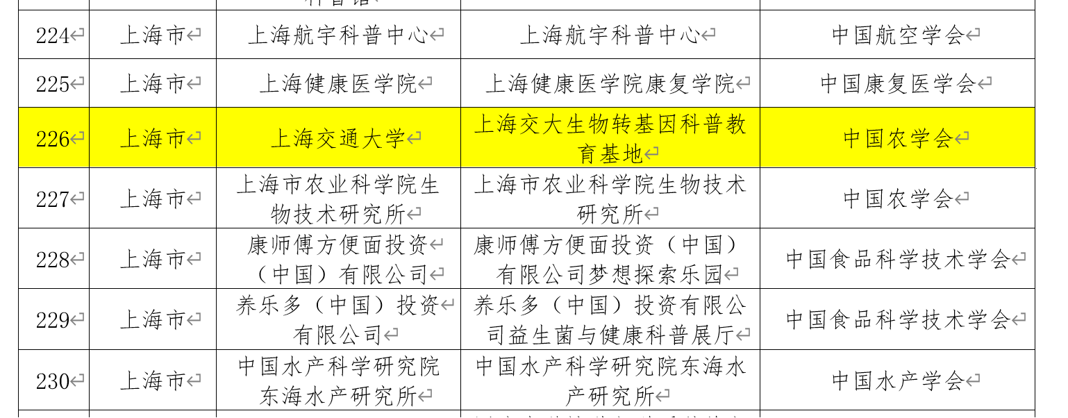 近日,中国科协办公厅发布了关于2021-2025年全国科普教育基地第一批认定名单的公示。经评审,437bwin必赢国际官网的“上海交大生物转基因科普教育基地”等800家单位入选2021-2025年全国科普教育基地第一批认定名单。