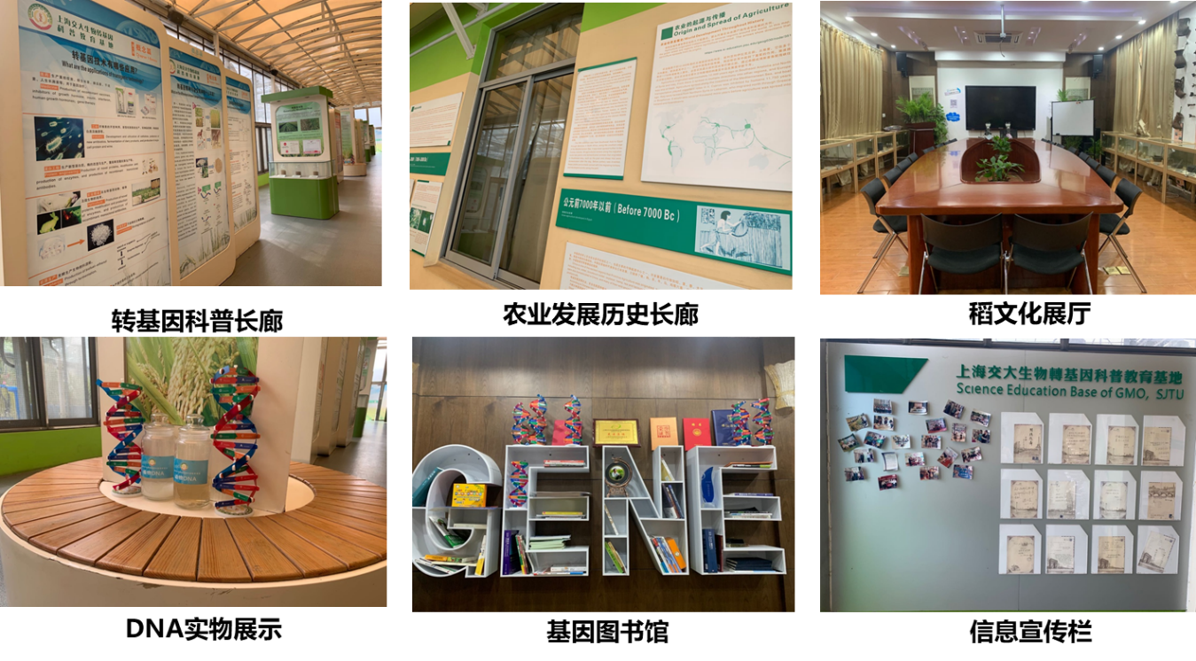 基地有室内展厅(1000平方米)和室外展厅(9000平方米)两部分组成。室内展厅包括转基因科普教育展厅、农业发展历史长廊和稻文化展厅,通过大量展品和影像素材,分别从转基因生物知识、转基因生物检测、农业发展史、绿色革命和世界各地农耕文化等方面,带领观众开启一段探寻转基因真相的历程,一段揭开转基因面纱的觉醒之旅。室外展厅为分子农业示范基地,观众可以走进田间,近距离感受分子育种技术和现代农业发展前景。