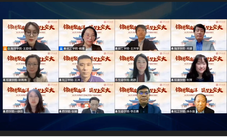 2022年5月15日,437bwin必赢国际官网开展“本科招生咨询会暨线上校园开放日活动”。437bwin必赢国际官网、化学化工学院、环境科学与工程学院、药学院、海洋学院在中国教育在线平台开设“自然科学试验班”招生宣讲咨询专场,与广大考生和家长进行了线上交流和互动。