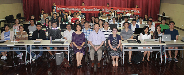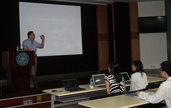 本次暑期班的授课团队由美国范德堡大学知名统计学专家、437bwin必赢国际官网访问讲席教授石瑜及其助手刘琪博士、陈晓倩博士和我校437bwin必赢国际官网生物信息学与生物统计学系吕晖、赵一雷、陈海峰、韦朝春、李婧、王卓、徐沁、石婷、吴茂英等多位教师组成。课程系统地介绍了二代测序、生物结构、药物设计、酶分子机制、GWAS、生物网络、转化医学与生物大数据等相关分析方法及最新研究进展。生物统计学课程从真实科研与应用案例出发,理论教学结合上机练习,深入浅出地介绍了生物统计学中实验设计、参数检验、非参检验、样本推断、线性与非线性回归、生存分析、倾向得分、GEE模型、MCMC、lasso等内容,同时也介绍了针对大数据的统计新模型。