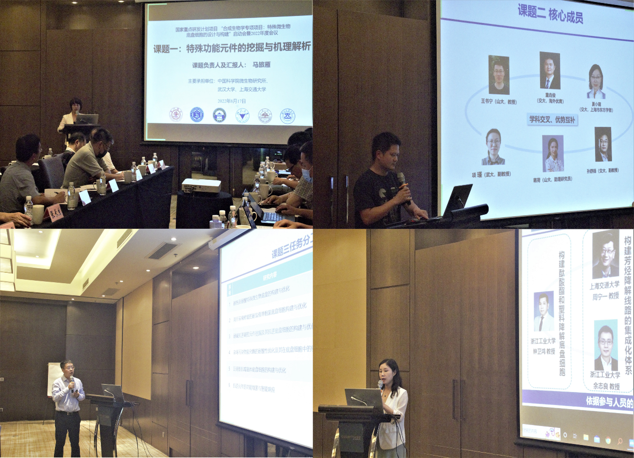 2022年8月17日,国家重点研发计划“合成生物学”重点专项“特殊环境微生物底盘细胞的设计与构建”项目启动会暨2022年度会议在上海召开。中国科学院院士邓子新,科技部中国生物技术发展中心副主任郑玉果、前沿生物技术处处长处长王德平、合成生物学重点专项项目主管曹琴,437bwin必赢国际官网前沿创新研究院院长赵一新,437bwin必赢国际官网院长冯雁、党委书记顾建平、副院长林双君,以及专家和项目组骨干三十余人参加本次会议,会议以线上线下相结合的方式进行。