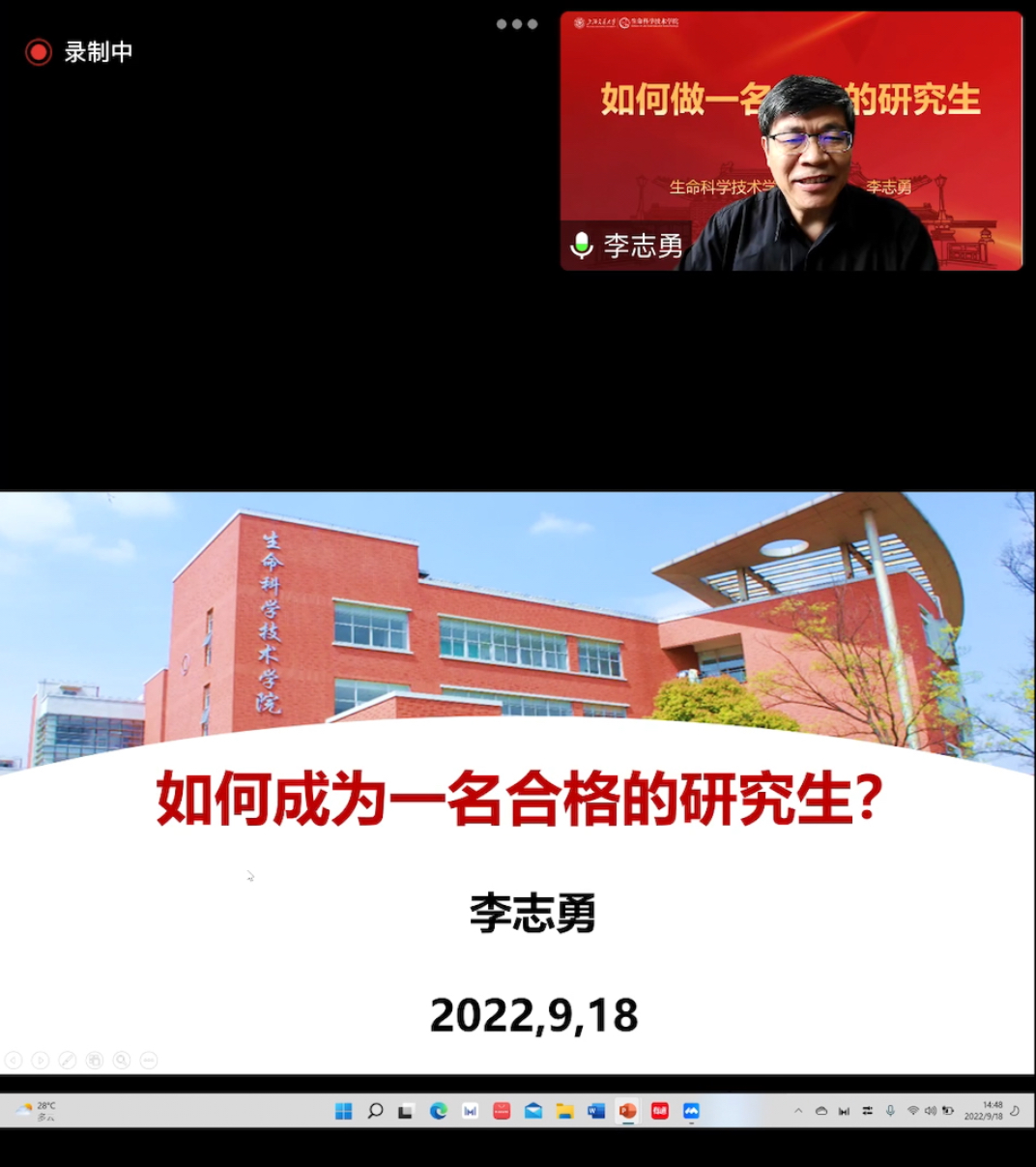 李志勇围绕“如何成为一名优秀的研究生”这个学生关心的话题,结合自身作为导师、教学副院长的工作体会进行分享,提出中肯建议。他希望同学们不忘读研初心,在科研道路上问鼎高峰、尽览群山。