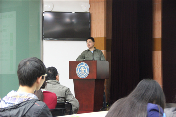 在提问互动环节,面对同学们提出的各种求职相关问题,钟鸣师兄都一一提出了自己的见解,幽默风趣又不失机智和理性。钟鸣师兄用自身的经历和经验告诉了同学们职业生涯对自身能力的要求,赢得了大家热烈的掌声。最后,研会副主席朱春苗代表学院同学向钟鸣师兄赠送了纪念品。