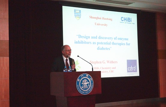 受聘仪式后,Stephen G. Withers教授为437bwin必赢国际官网、药学院、系统生物医学研究院等百余名师生带来题为“用于糖尿病治疗的酶抑制剂设计及发现/Design and discovery of enzyme inhibitors as potential therapies for diabetes”的学术报告,介绍了他们通过抑制人体消化道内淀粉酶来控制血糖水平的研究实例,生动讲解了如何从天然产物出发,探索发现酶抑制剂,并用于临床治疗研究的过程。报告后,教授就同学们对相关研究的一些感兴趣话题,与大家进行了热烈讨论。