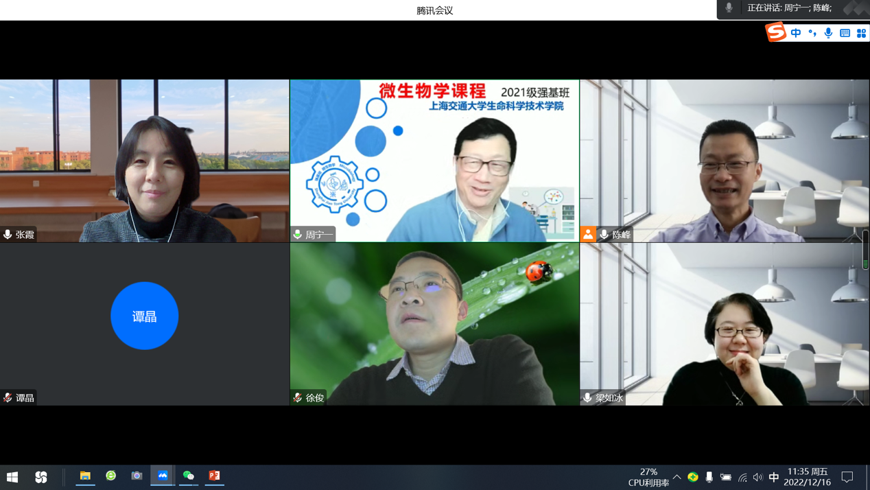 2022年12月16日,437bwin必赢国际官网微生物类课程教学团队在线开展微生物学教学研究交流会议。会议由陈峰教授主持,周宁一、张霞、徐俊、梁如冰4位任课教师以及教务办主任谭晶参加会议。