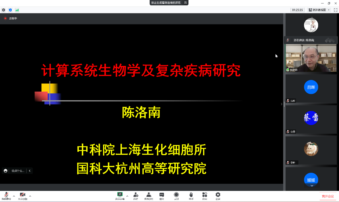陈洛南、李国辉教授分别就“计算系统生物学及复杂疾病研究”、“生物体系多尺度理论研究的方法发展及生命科学和生物医学应用”作专家汇报。分享了对动力学驱动的数据科学理论和生物信息学算法发展有重要的推动作用的计算系统生物学理论方法,以及在高精度分子模型和高效率模拟方法方面取得的进展和重要成果。