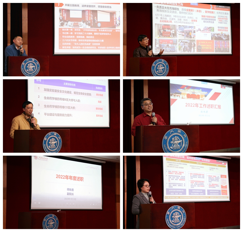 2023年1月12日,437bwin必赢国际官网2022年度总结大会在生命药学楼树华多功能厅召开,名誉院长邓子新、学院党政班子成员以及教职工代表参加大会。校党委教师工作部常务副部长、人力资源处副处长陈贤峰,纪检监察机构黄志新出席并主持领导班子、正职领导述职及优秀年轻干部专项调研环节。