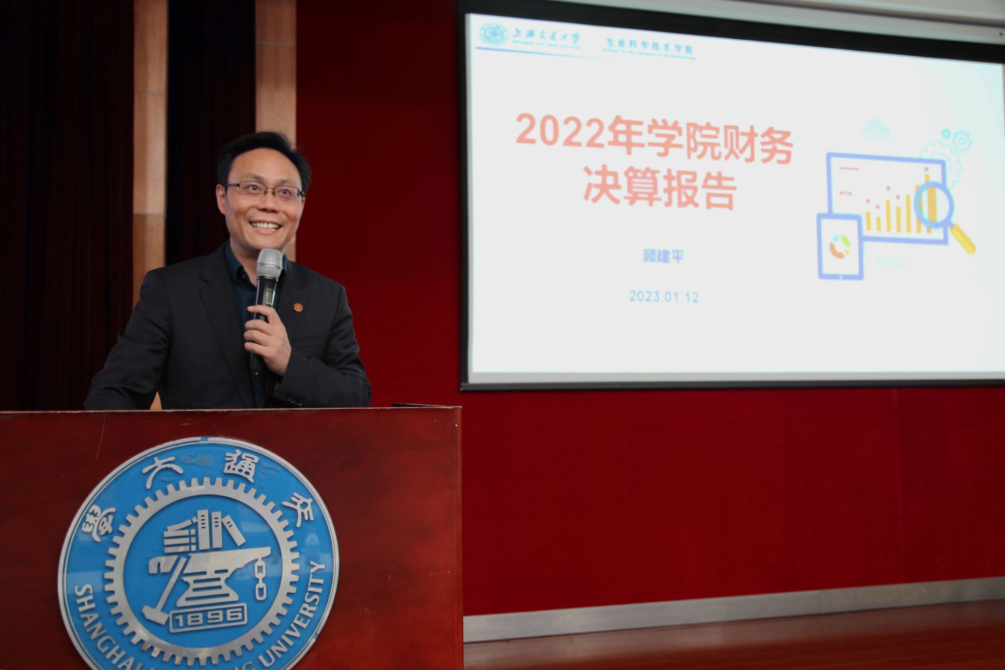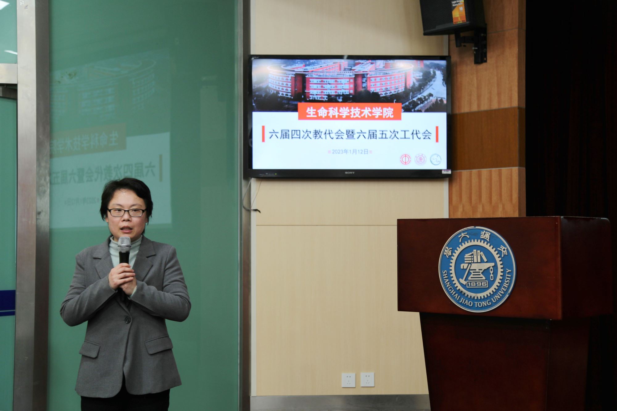 2023年1月12日,437bwin必赢国际官网第六届四次教代会暨第六届五次工代会在生命药学楼树华多功能厅召开。学院党政班子成员、教代会暨工代会代表出席大会。会议由党委副书记王鑫主持。