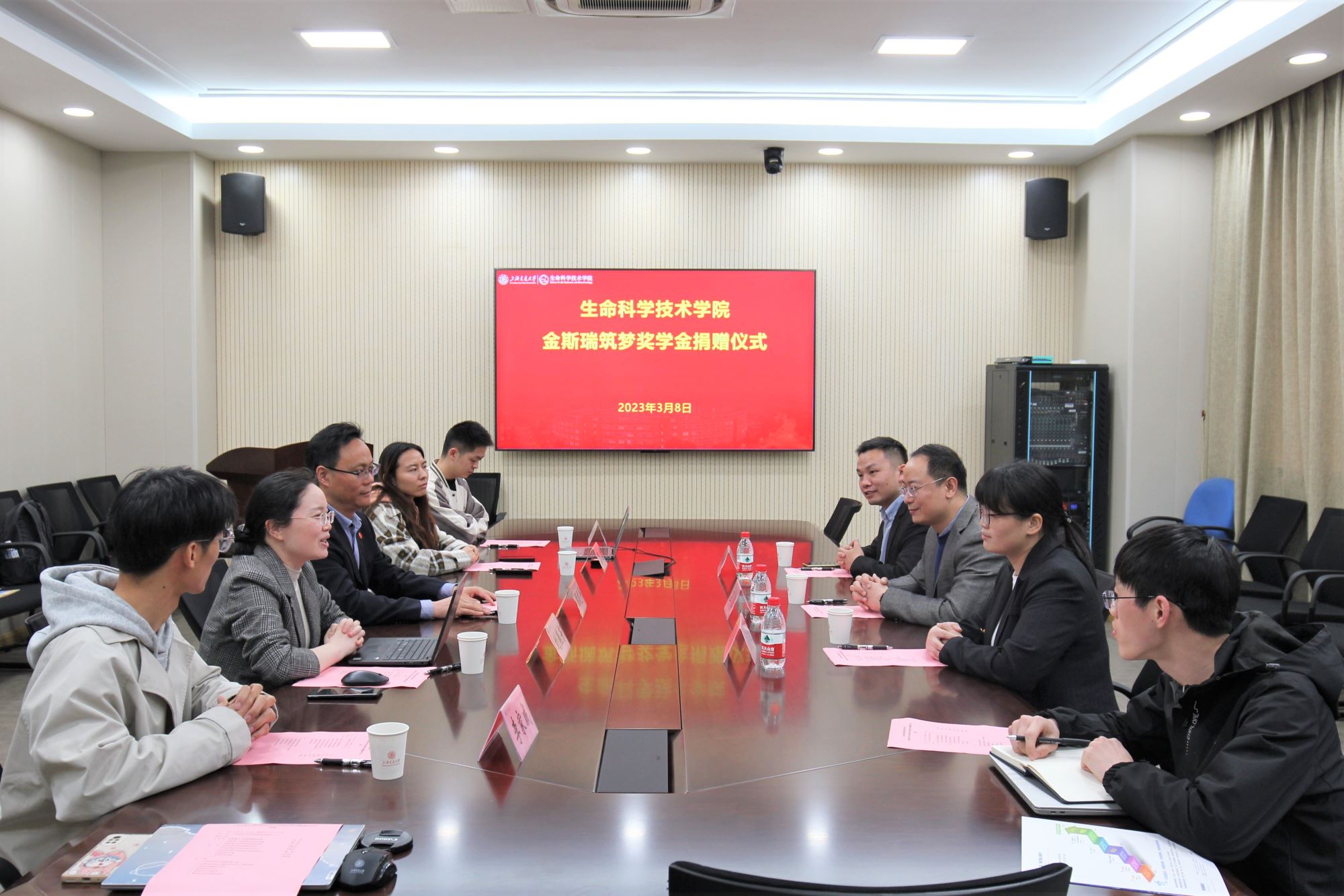 2023年3月8日,437bwin必赢国际官网“金斯瑞筑梦奖学金”捐赠签约仪式在生命药学楼2-116举行。437bwin必赢国际官网党委书记顾建平,金斯瑞人力资源招聘副总裁吴盛、人力资源校招项目经理戴敏、人力资源校园招聘专家徐涛等出席捐赠仪式,会议由437bwin必赢国际官网学生办主任刘燕芳主持。