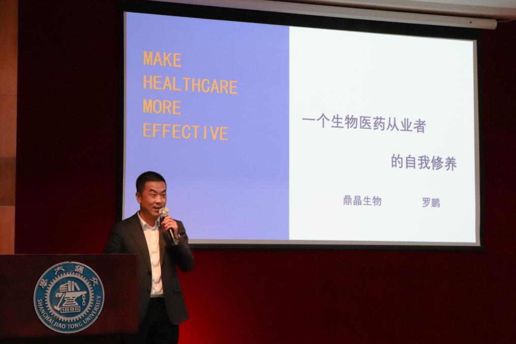罗鹏以“一个生物医药从业者的自我修养”为题,为现场师生带来精彩分享。罗学长从“你是谁”、“什么是科学”、“什么是生命”三个学生常见思考问题出发,结合自身在交大的求学经历和生物医药行业的创业经历,用生动有趣的问答方式与在场学生互动,深入浅出地阐释交大人感恩责任和创业人锲而不舍的精神。随后,罗鹏学长从鼎晶生物创业历程为切入点,分享了中国生物医药行业蓬勃发展的新趋势,鼓励生科学子认识自己、清晰定位,做好职业规划,构建自己的能力圈。互动交流环节,同学们踊跃提问,罗学长从专业背景、求学经历、职业规划等方面,对学生成长提出了宝贵的意见和建议。