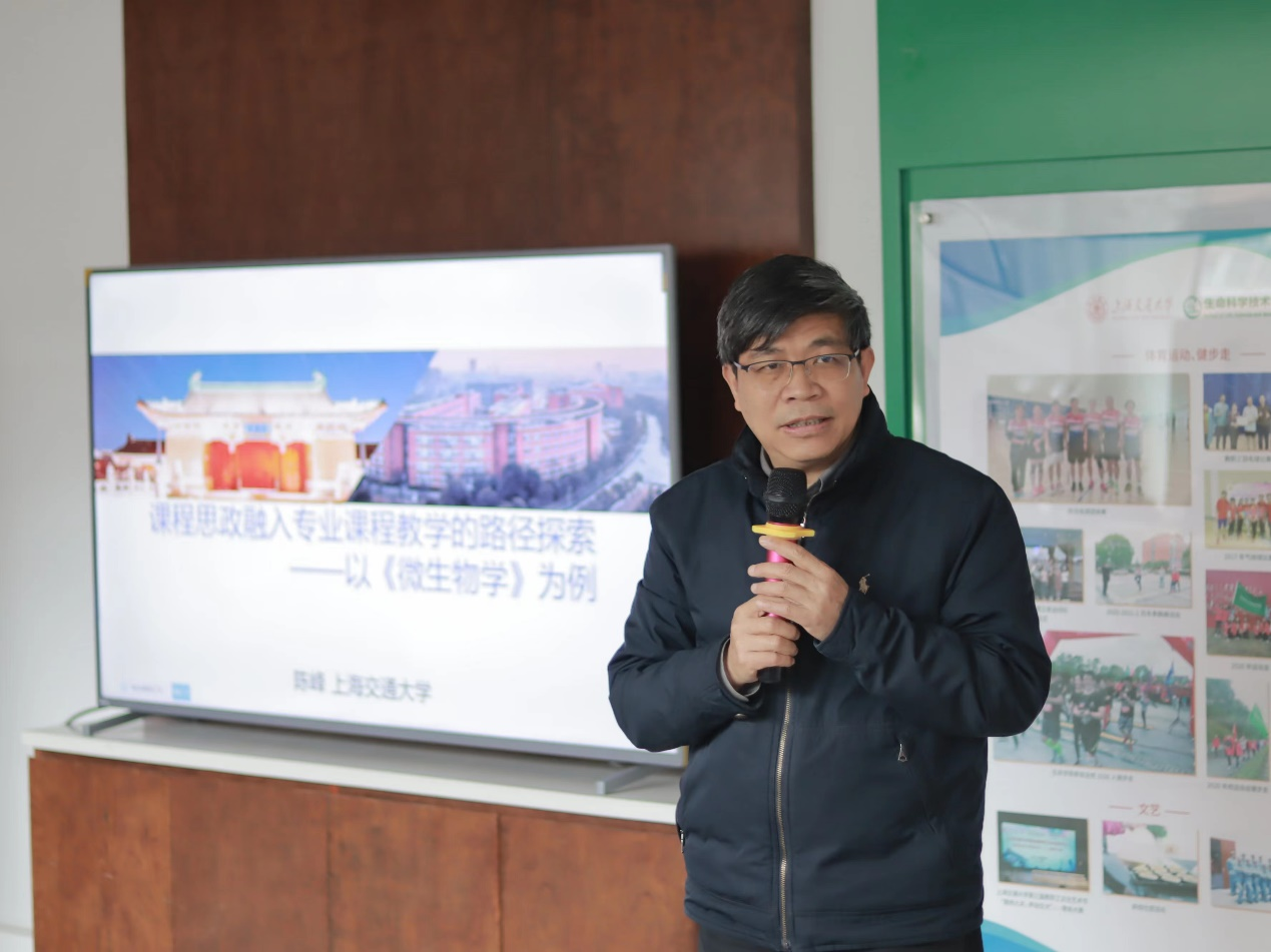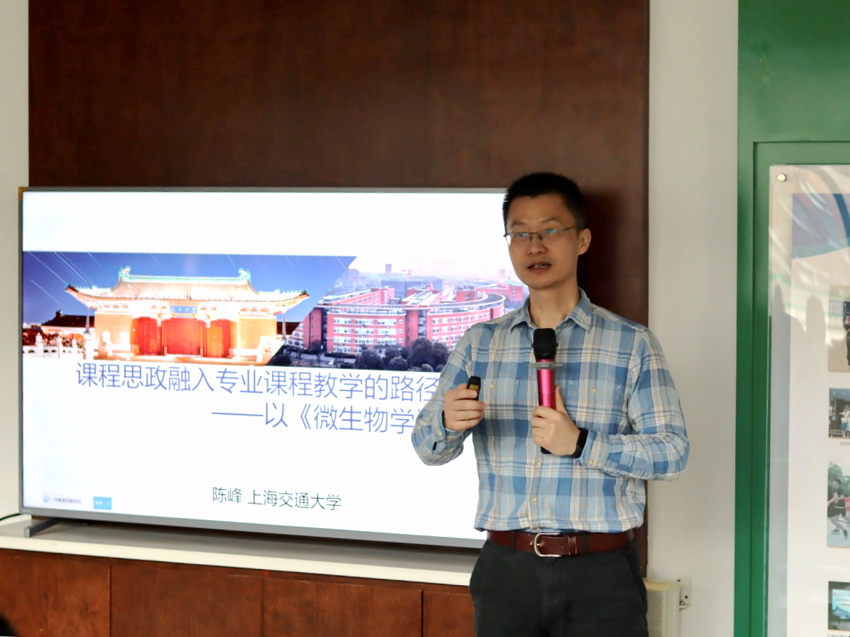 副院长李志勇教授做了开场致辞,他指出,学院作为学校课程思政试点学院,课程思政建设成果丰硕,本次陈峰教授以《微生物学》为例分享课程思政融入专业课程教学的深刻的理解和体会,希望对在座老师们的课程教学有所帮助和提升。