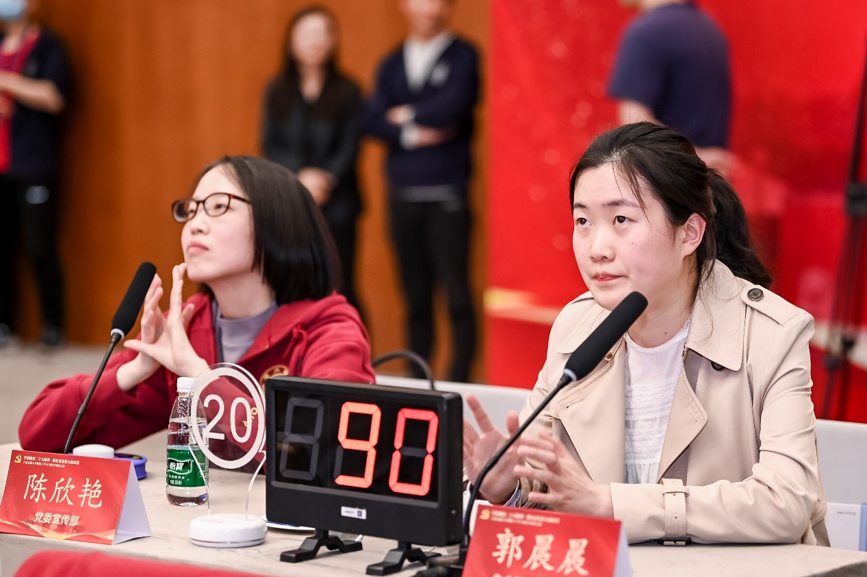 2023年4月19日,由学校党委宣传部和校工会联合主办的“学思践悟二十大精神 踔厉奋发伟大新征程”437bwin必赢国际官网教职工学习习近平用典大赛复赛和决赛在闵行校区文博楼会议厅举行。我院机关郭晨晨、Bio-X研究院丁瑾两位老师在此前的网络初赛中进入全校前40名,晋级复赛。