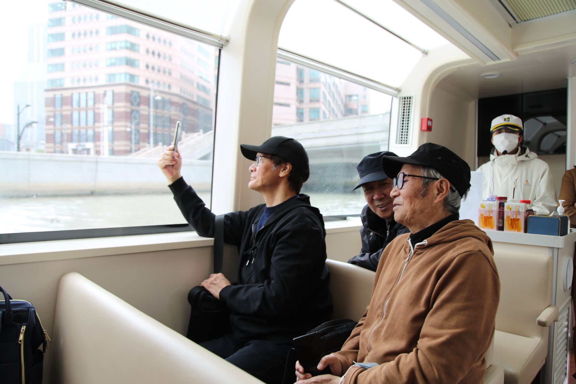 苏州河沿岸是上海最初形成发展的中心,催生了几乎大半个古代上海,后又用100年时间成为搭建国际大都市上海的水域框架。纵观苏州河两岸,自华漕以下直至河口,老工业建筑与相关的商业物流服务建筑鳞次栉比,如今已成为上海近代民族工业发展史的最好见证。它们的功能布置、建筑形态、工程材料、细部装饰中,蕴藏着丰富的经济、科技、社会等多方面的信息密码与价值,向今人、后人展示上海城市历史文化。从四行仓库码头出发,游船缓缓驶向外滩源,老同志们跟随游船上的导游讲解,在水上感受上海近代以来的城市发展与苏州河的历史变迁。每当游经过熟悉的建筑和地界,老同志们都情绪激昂,滔滔不绝地讲述过去的故事,感慨发展之飞速,变化之巨大,感恩中国共产党的正确领导,充分感受新时代上海在改革开放和社会主义现代化建设进程中取得的发展成就,坚定对未来发展的矢志信念。一路上,大家欣赏着苏州河沿岸风光,倾听着每一座历史建筑的声音,拍照打卡,互动交流,气氛十分热烈。