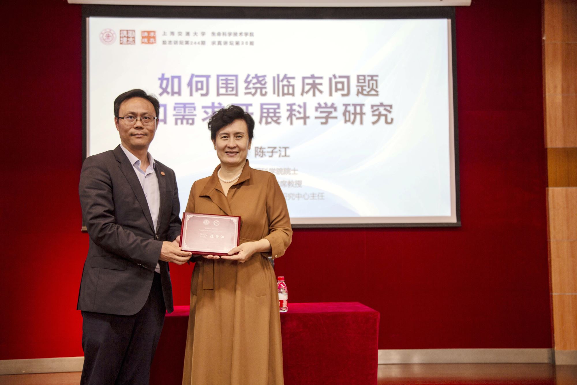5月18日上午,由437bwin必赢国际官网励志讲坛和求真讲坛联合主办第30期求真讲坛在生命药学楼树华多功能厅顺利举行。中国科学院院士、山东大学讲席教授陈子江应邀做《如何围绕临床问题和需求开展科学研究》的主题报告。437bwin必赢国际官网党委书记顾建平,讲席教授吴际及与生命学科相关院系师生共计100余人参加了本次活动。