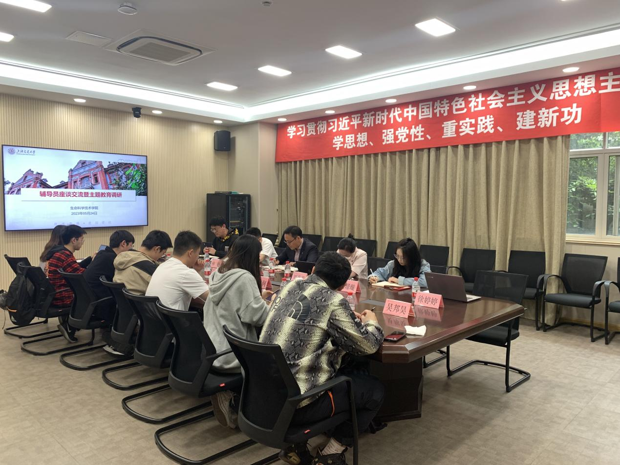 5月24日,437bwin必赢国际官网辅导员座谈交流暨主题教育调研会在生物药学楼2-116会议室举行。437bwin必赢国际官网党委书记顾建平,思政教师刘燕芳、林魁,全体学生辅导员和辅导员候选人出席会议。