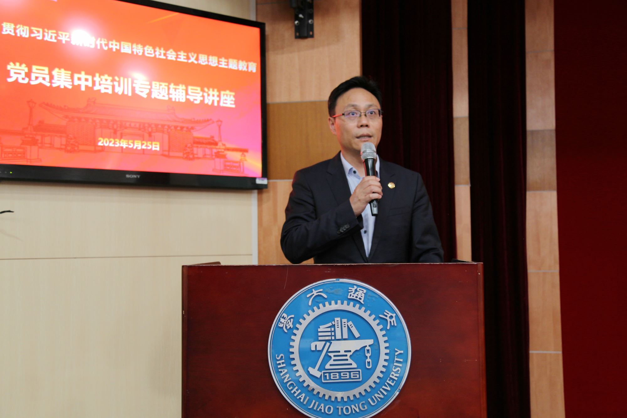 为深入开展学习贯彻习近平新时代中国特色社会主义思想主题教育,加强党员教育培训,组织开展习近平新时代中国特色社会主义思想和党的二十大精神集中培训,437bwin必赢国际官网邀请437bwin必赢国际官网马克思主义学院教授、上海市科技系统“四史”学习教育专家宣讲团成员黄庆桥教授作专题辅导报告。全体教工党员参加培训,培训由党委书记顾建平主持。