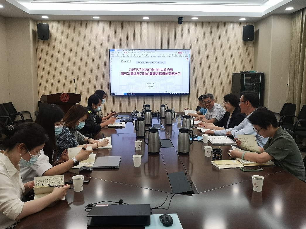 顾建平领学习近平总书记在中共中央政治局第五次集体学习时关于“加快建设教育强国,为中华民族伟大复兴提供有力支撑”的重要讲话精神。王鑫副书记领学研读《习近平新时代中国特色社会主义思想的世界观和方法论专题摘编》有关章节,并结合工作实际阐释了“六个必须坚持”的内涵。
