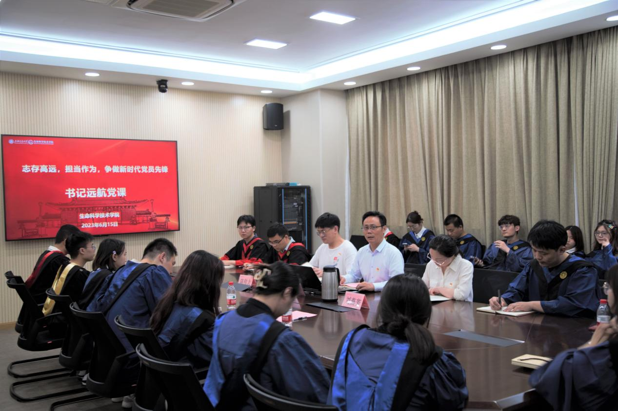 毕业生党员代表发言。本科毕业生党员龚禹桥表示将在未来始终牢记自己初心和使命,提高个人站位,在读博的过程中积极投身生命科学领域的探索;研究生毕业生党员王静表达了对学院教育和培养的感激之情,表示将在未来的工作中向身边优秀的榜样学习,担负起交大人的时代责任。