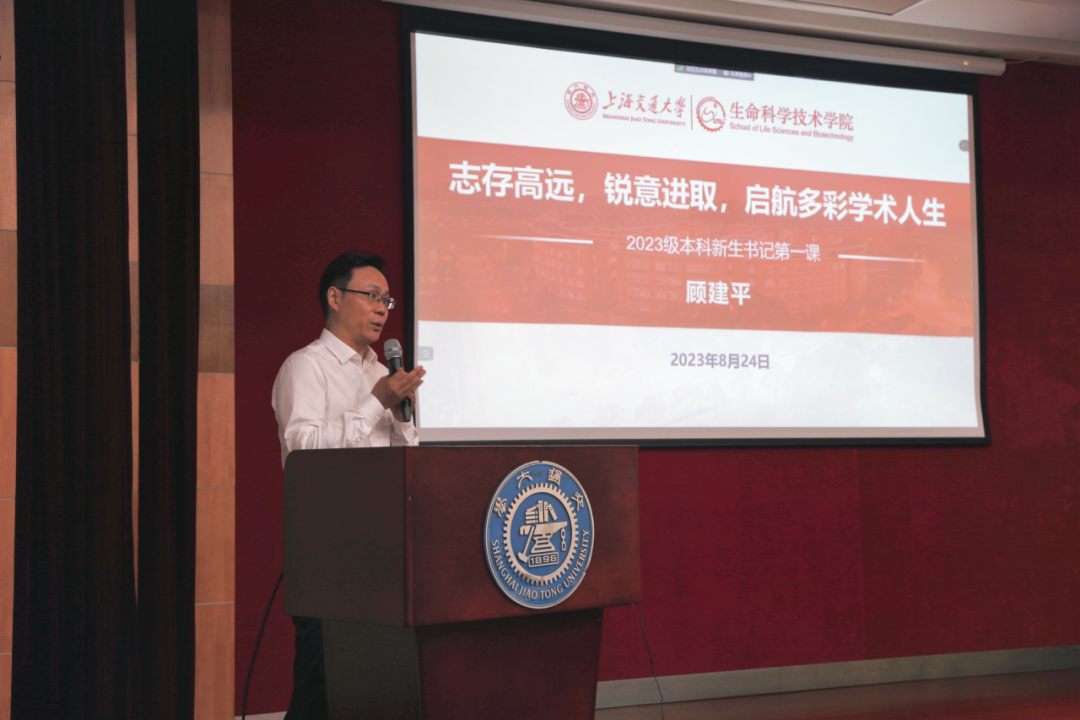 最后,顾建平再次强调责任与担当,勉励同学们担负起生科人的时代使命,同时希望同学们能够在大学生活中自己做主,德智体美劳全面发展,保持努力的状态,成就最好的自己。