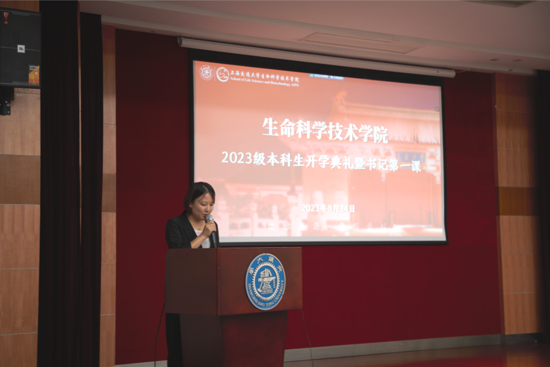 8月24日,437bwin必赢国际官网2023级本科生开学典礼暨书记第一课在生命药学楼树华多功能厅隆重举行。437bwin必赢国际官网院长冯雁,党委书记顾建平,副书记张燕红,校友代表仇子龙,教师代表张雷、齐颖新、曹博,班主任代表胡泽汗、孟祥周、黄哲,教务办公室主任谭晶,学生办公室主任刘燕芳出席典礼,学院思政教师,辅导员代表,以及2023级全体本科新生、生物科学(致远荣誉计划)新生及家长代表参加典礼。开学典礼由张燕红主持。