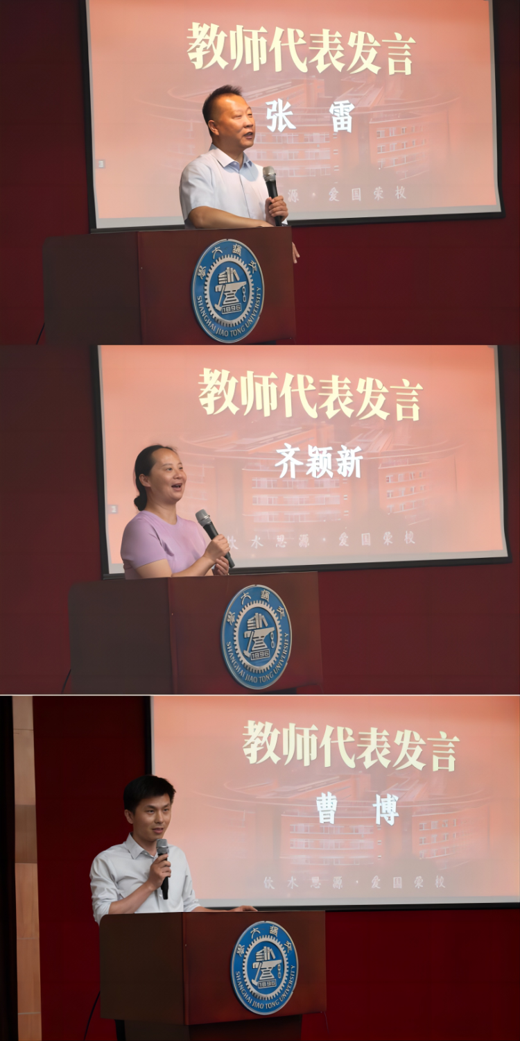 班主任代表,生科2301班班主任胡泽汗发言。他首先祝贺并欢迎同学们加入交大生科院,并提出,大学生活是一个全新的起点,汇聚了各种可能性与机遇,但同时也有众多挑战。胡泽汗勉励同学们在遇到困难时相信自己,坚持不懈,勇于面对,并表示作为班主任随时欢迎同学们前来寻求帮助和建议。